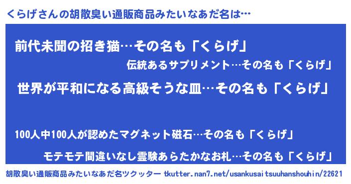 | ヘコむあだ名 | 『豆乳』『くらげ(笑)』『くらを』 |