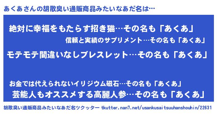 | ヘコむあだ名 | 『あくふぇ~』『あくあ(笑)』 |
