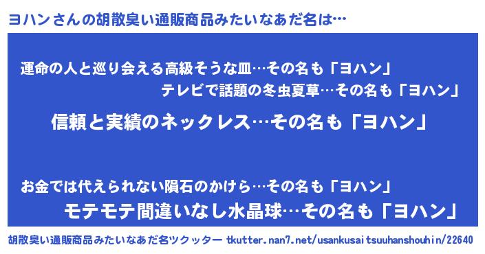 | ヘコむあだ名 | 『ヨハっ子』『レバニラ』 |