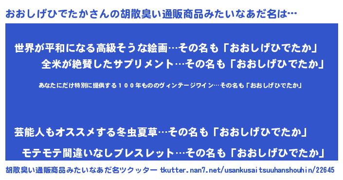 | 意味不明あだ名 | 『住所不定無職おおしげひでたか(4歳)』 |
