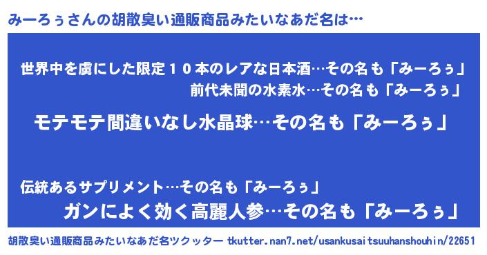 | 意味不明あだ名 | 『ペロリンみーろぅ』『自称みーろぅ』 |