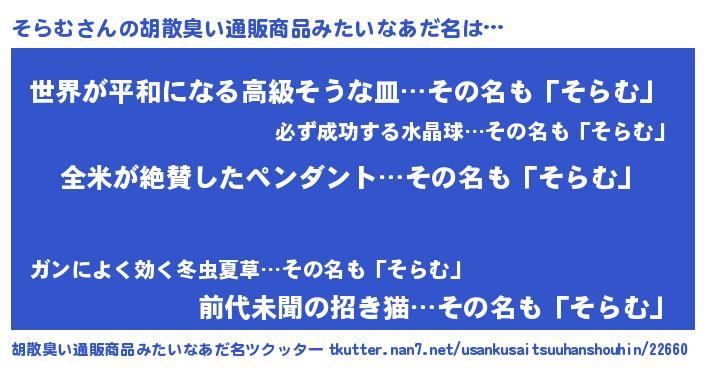 | ヘコむあだ名 | 『そらっちょ』『なまこ酢』 |