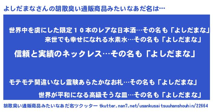 | 肩書あだ名 | 『よしだまな中尉』『よしだまな塾長』 |