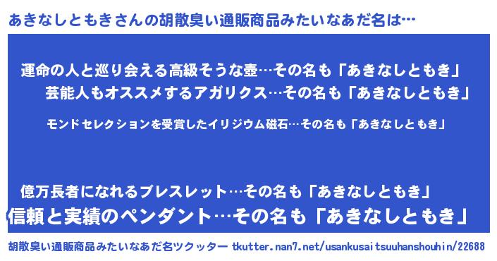 | 伝説のあだ名 | 『救世主となる占い師あきなしともき』 |