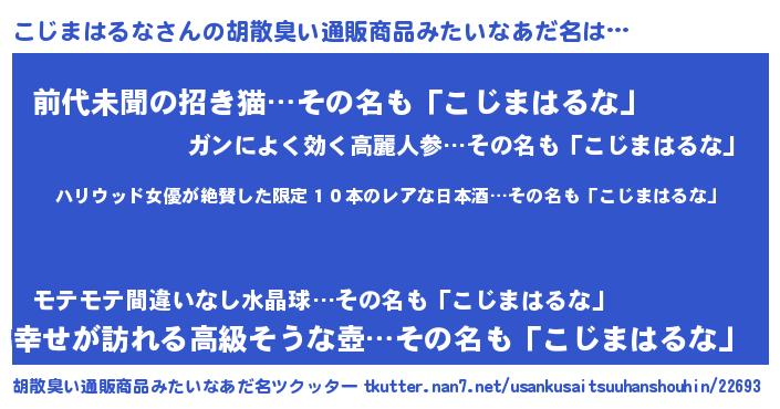 | 伝説のあだ名 | 『聞きしに勝る暗殺者こじまはるな』 |