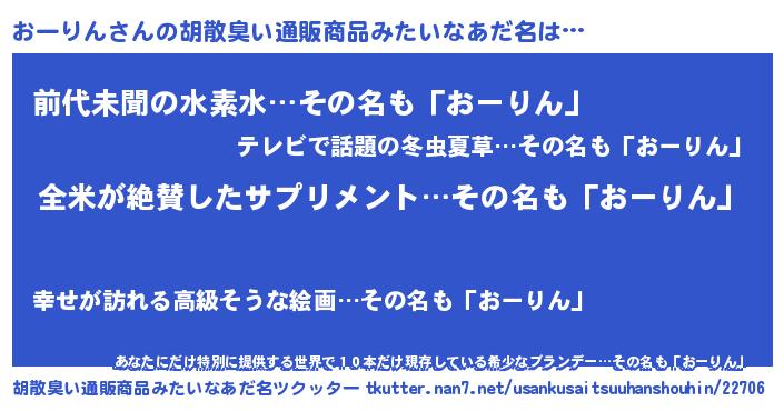 | 恥ずかしいあだ名 | 『オーリンリン』『おーちん』 |