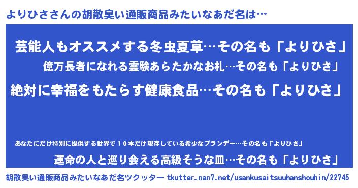 | 意味不明あだ名 | 『永久保存よりひさ』『自称よりひさ』 |