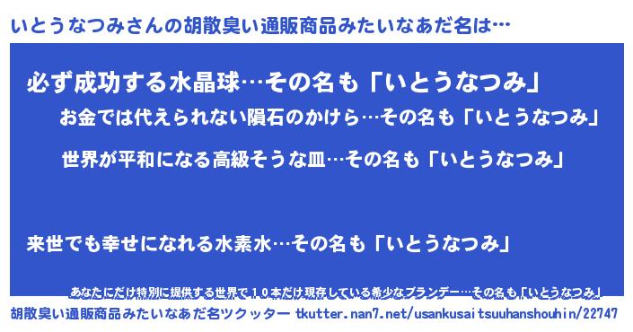 | 意味不明あだ名 | 『いとうなつみフォーエバー』 |