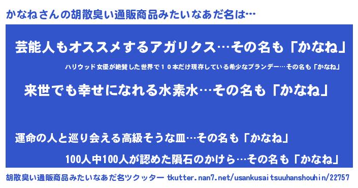 | 恥ずかしいあだ名 | 『かなちん』『カナネデラックス』 |