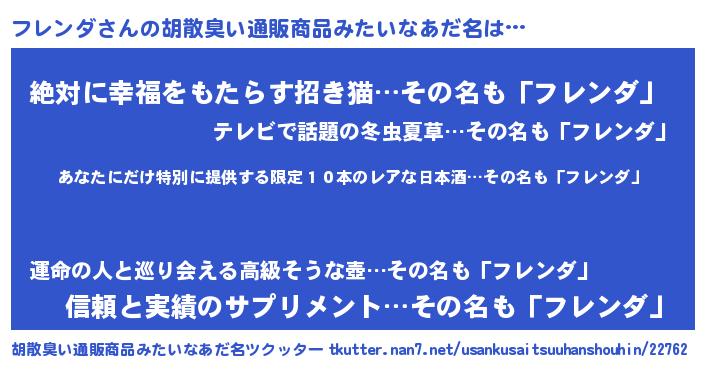 | ヘコむあだ名 | 『フレンダ(笑)』『フレを』『牛乳』 |