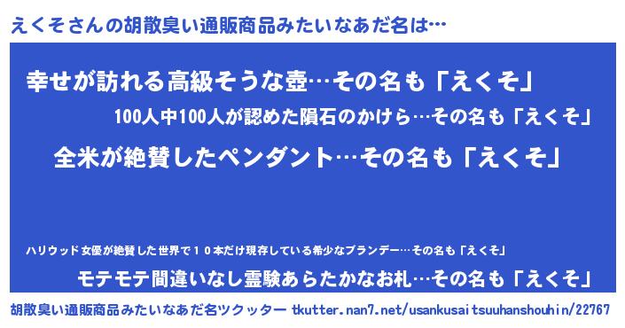 | 意味不明あだ名 | 『とにかく怪しいえくそ』 |
