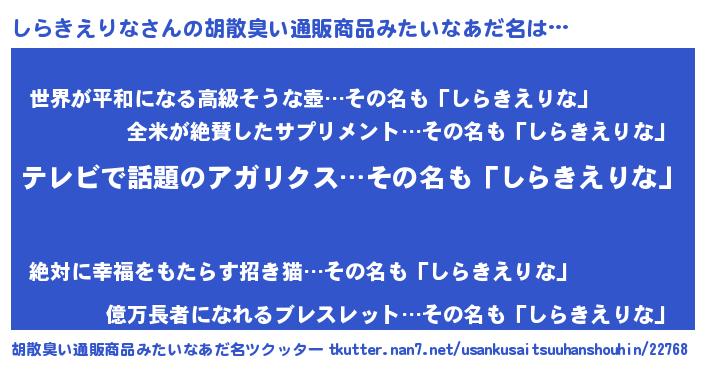 | 意味不明あだ名 | 『自称しらきえりな』 |