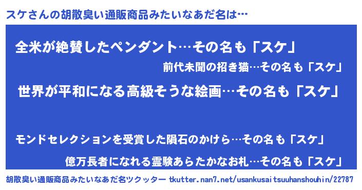 | 意味不明あだ名 | 『スケフォーエバー』『ペロリンスケ』 |