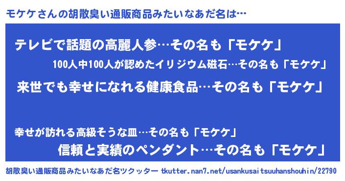 | 意味不明あだ名 | 『永久保存モケケ』『自称モケケ』 |