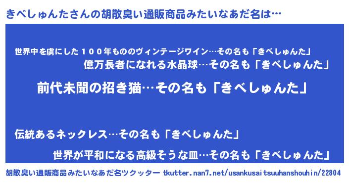 | 意味不明あだ名 | 『永久保存きべしゅんた』 |