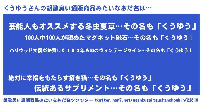 | ヒーロー風カッコイイあだ名 | 『仮面クウダー』『ウルトラ戦士クウユウ』 |
