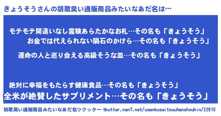 | 肩書あだ名 | 『きょうそう国家主席』『きょうそう団長』 |