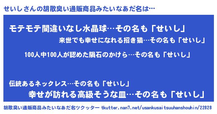 | ヘコむあだ名 | 『せいもー』『豆乳』『せいっぺ』 |
