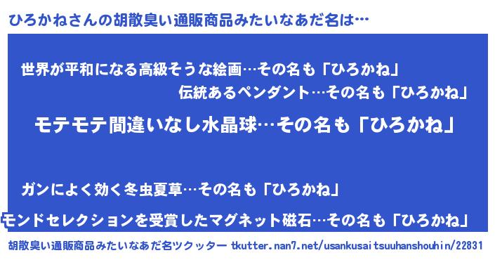 | ヘコむあだ名 | 『ひろにゅー』『豆乳』『ひろを』 |