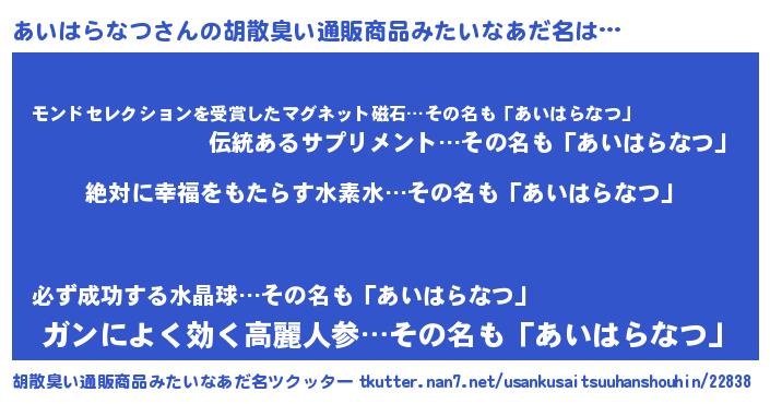| 意味不明あだ名 | 『永久保存あいはらなつ』 |