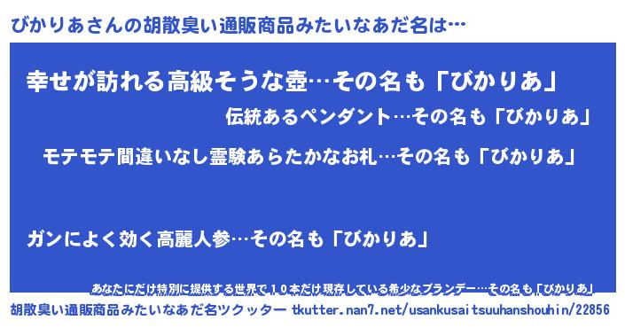 | ヘコむあだ名 | 『びかもー』『つくし』『びかっちょ』 |
