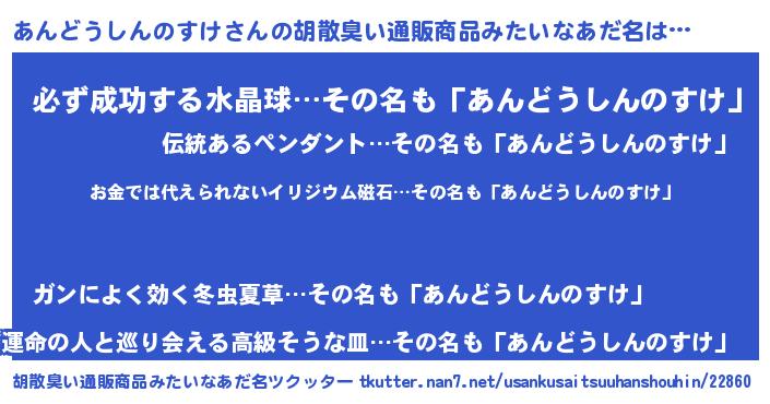 | 意味不明あだ名 | 『眠気覚ましガムあんどうしんのすけ味』 |