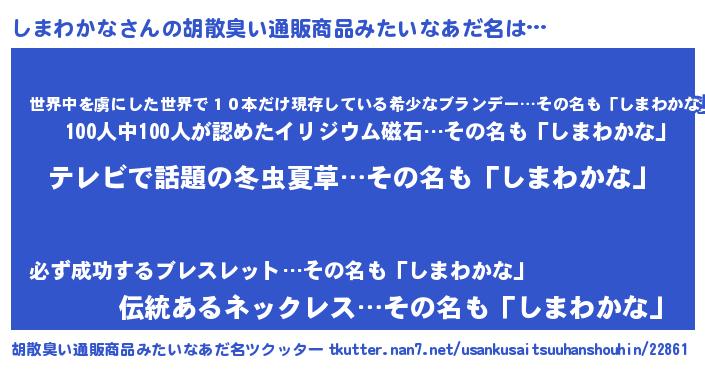 | 意味不明あだ名 | 『自称しまわかな』 |