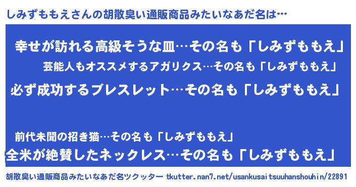 | 意味不明あだ名 | 『ペロリンしみずももえ』 |
