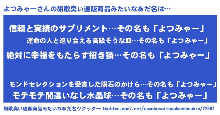 | 意味不明あだ名 | 『永久保存よつみゃー』 |