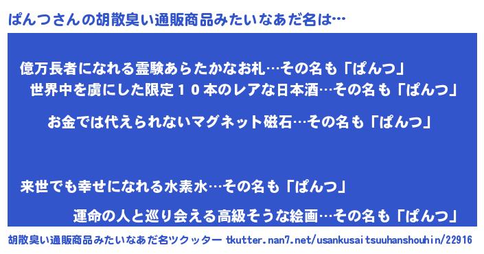 | ヒーロー風カッコイイあだ名 | 『慈愛の使者ぱんつ』『スーパーパンツ』 |