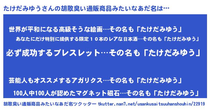 たけだみゆうさんの胡散臭い通販商品みたいなあだ名をツクッター!