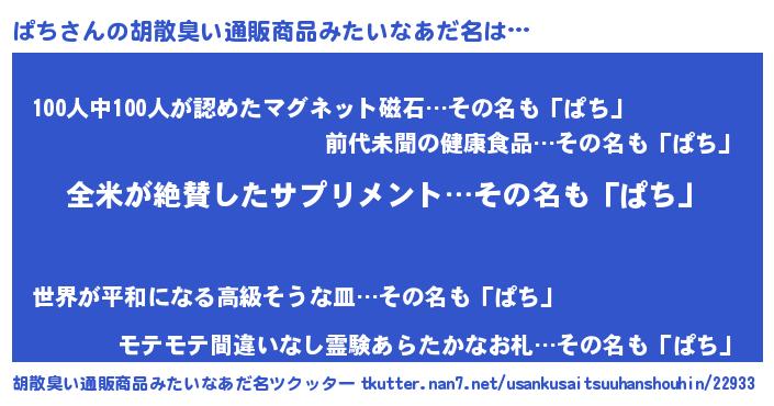 ぱちさんの胡散臭い通販商品みたいなあだ名をツクッター!