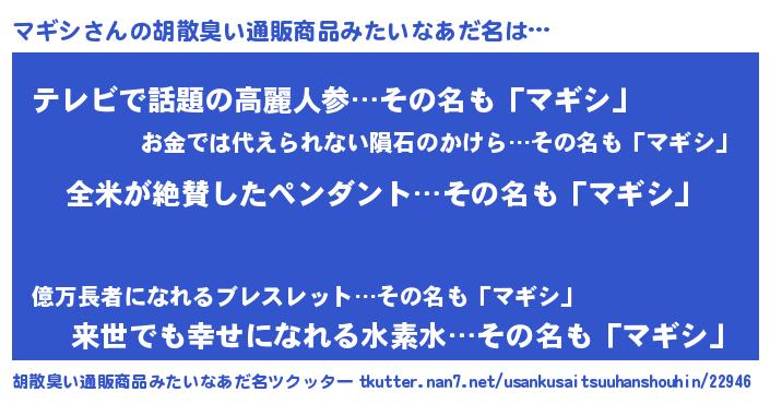 | ヘコむあだ名 | 『マギぷりん』『マギシ(笑)』 |