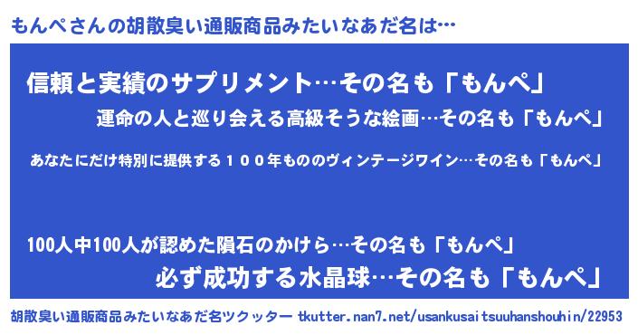 もんぺさんの胡散臭い通販商品みたいなあだ名をツクッター!