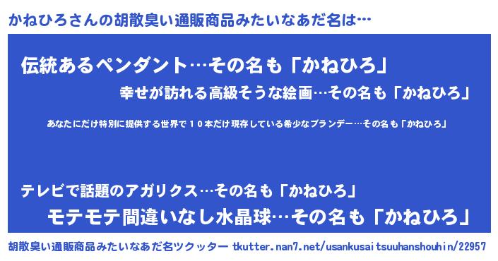 | 欧米人風あだ名 | 『トリンドルかねひろ』 |