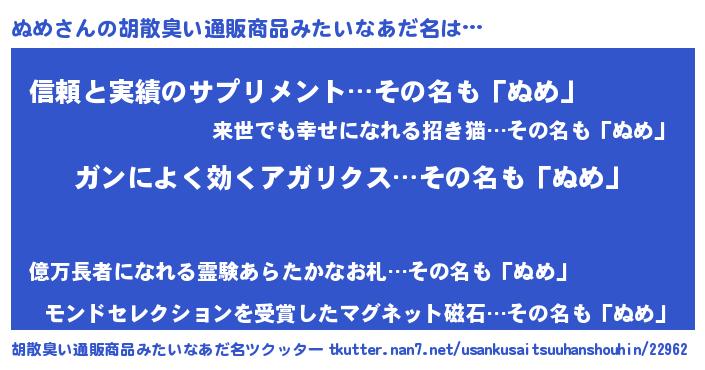 | 男性向けラノベタイトル風あだ名 | 『魔法科高校のぬめ』 |