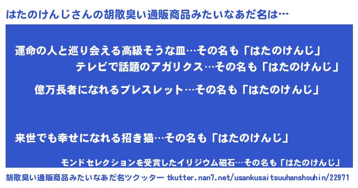 | 肩書あだ名 | 『はたのけんじCEO』『はたのけんじ大統領』 |
