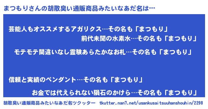| ヘコむあだ名 | 『まつもー』『まつもり(爆)』 |