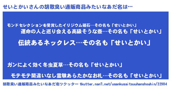 | 意味不明あだ名 | 『とにかく怪しいせいとかい』 |