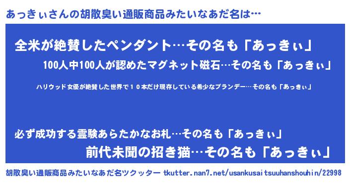 | ヘコむあだ名 | 『あっぷりん』『あっきぃ(震え声)』 |
