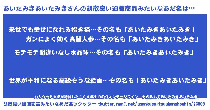 | ヘコむあだ名 | 『あいにゅー』『あいたみきあいたみき(笑)』 |
