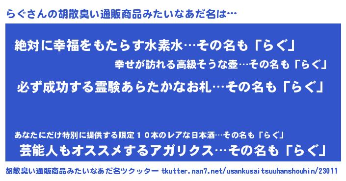 | ヘコむあだ名 | 『らぐもー』『らぐ(遠い目)』 |
