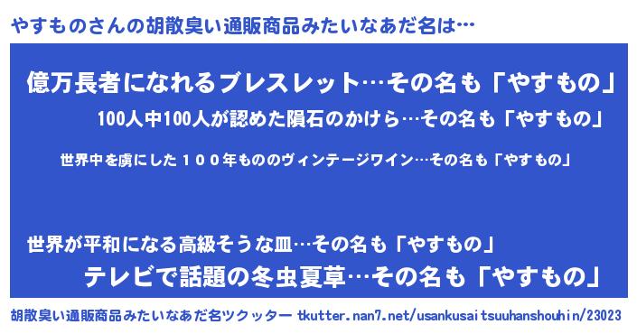 | 意味不明あだ名 | 『住所不定無職やすもの(9歳)』 |