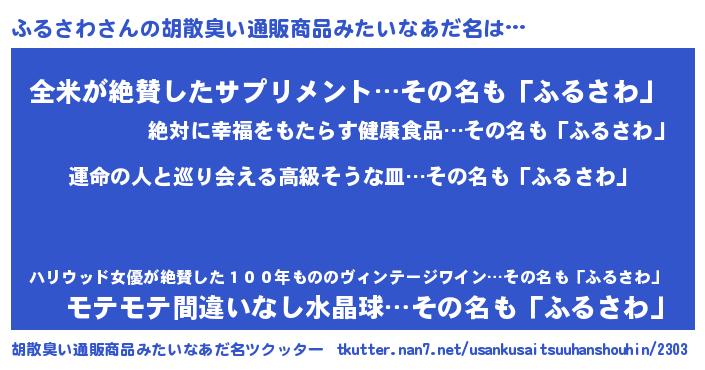 | 意味不明あだ名 | 『ふるさわフォーエバー』 |