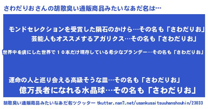 | 意味不明あだ名 | 『住所不定無職さわだりお(86歳)』 |