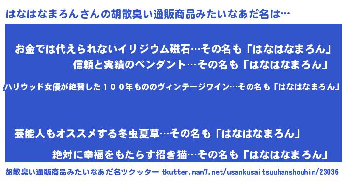 | ヘコむあだ名 | 『はなはなまろん(小並感)』『はなっぺ』 |