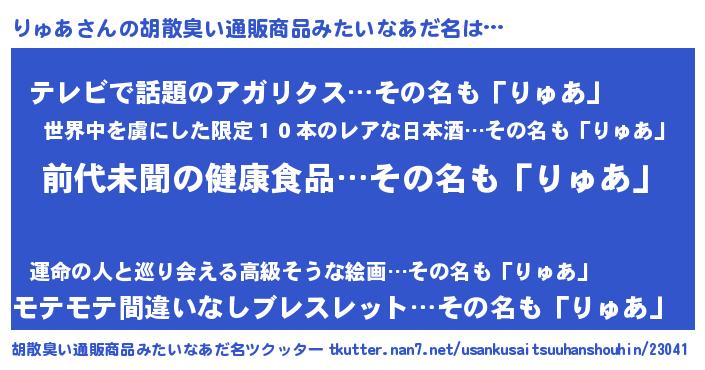 | 意味不明あだ名 | 『永久保存りゅあ』『自称りゅあ』 |