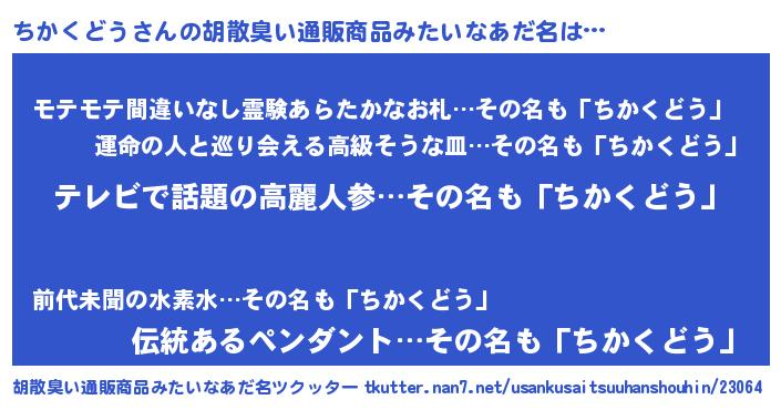 | 意味不明あだ名 | 『自称ちかくどう』『ペロリンちかくどう』 |
