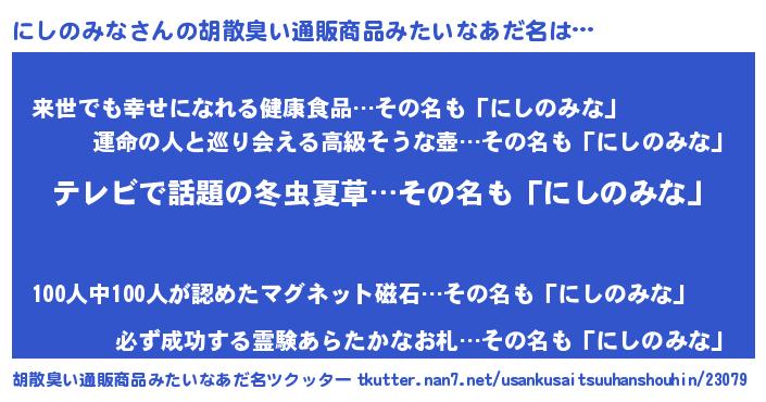 | ヘコむあだ名 | 『にしのみな(震え声)』『にしにゅー』 |