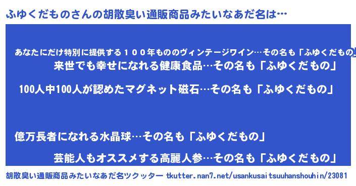 | ヘコむあだ名 | 『ふゆくだもの(笑)』『ふゆにー』 |
